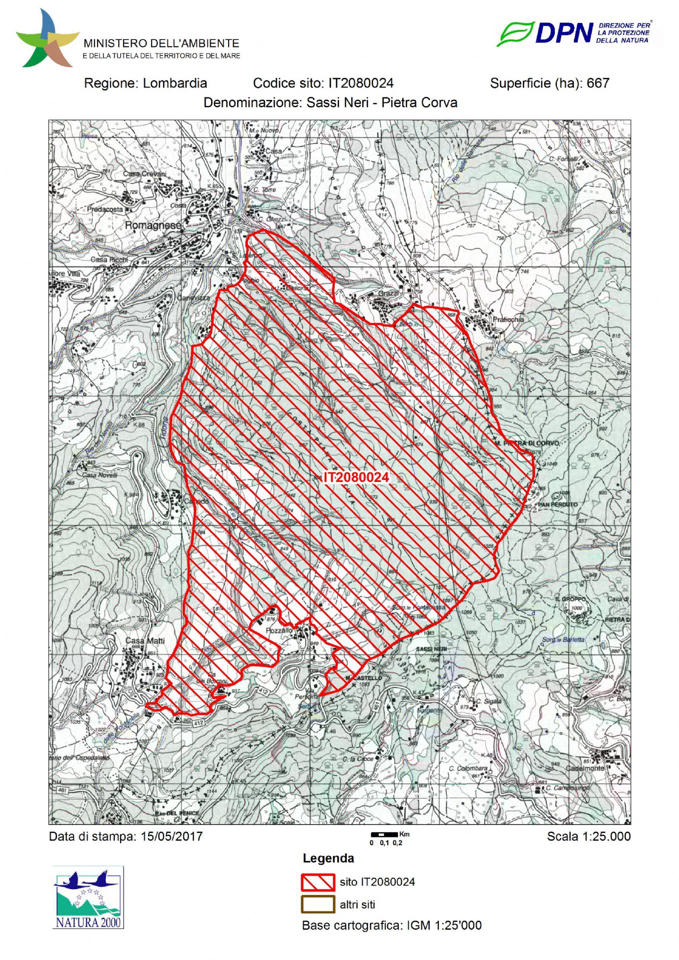 Il SIC (sito di interesse comunitario) Sassi Neri – Pietra Corva si estende per 667 ettari nel comune di Romagnese, sulla sponda orografica destra del torrente Tidone, dal corso del fiume fino agli oltre 1000 metri dei monti Pietra di Corvo, Pan Perduto e dei Sassi Neri.